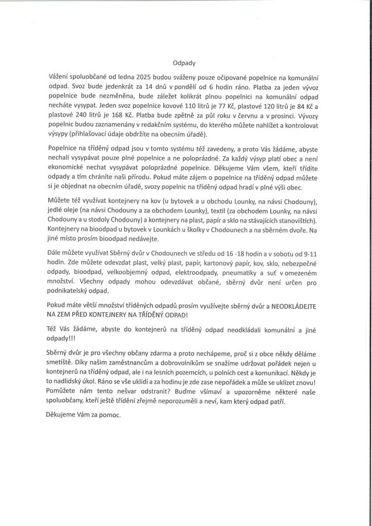 Informace k odpadům